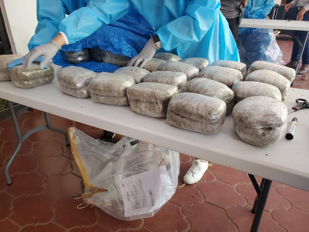 La operación antinarcóticos se ejecutó en la aldea La Corteza del municipio de El Triunfo, Choluteca, donde a Rómulo Ventura de 62 años de edad y a Flor de María Muños Gonzáles de 42 años de edad, se les incautaron 2,453 paquetes de supuesta hierba seca, supuesta marihuana.
