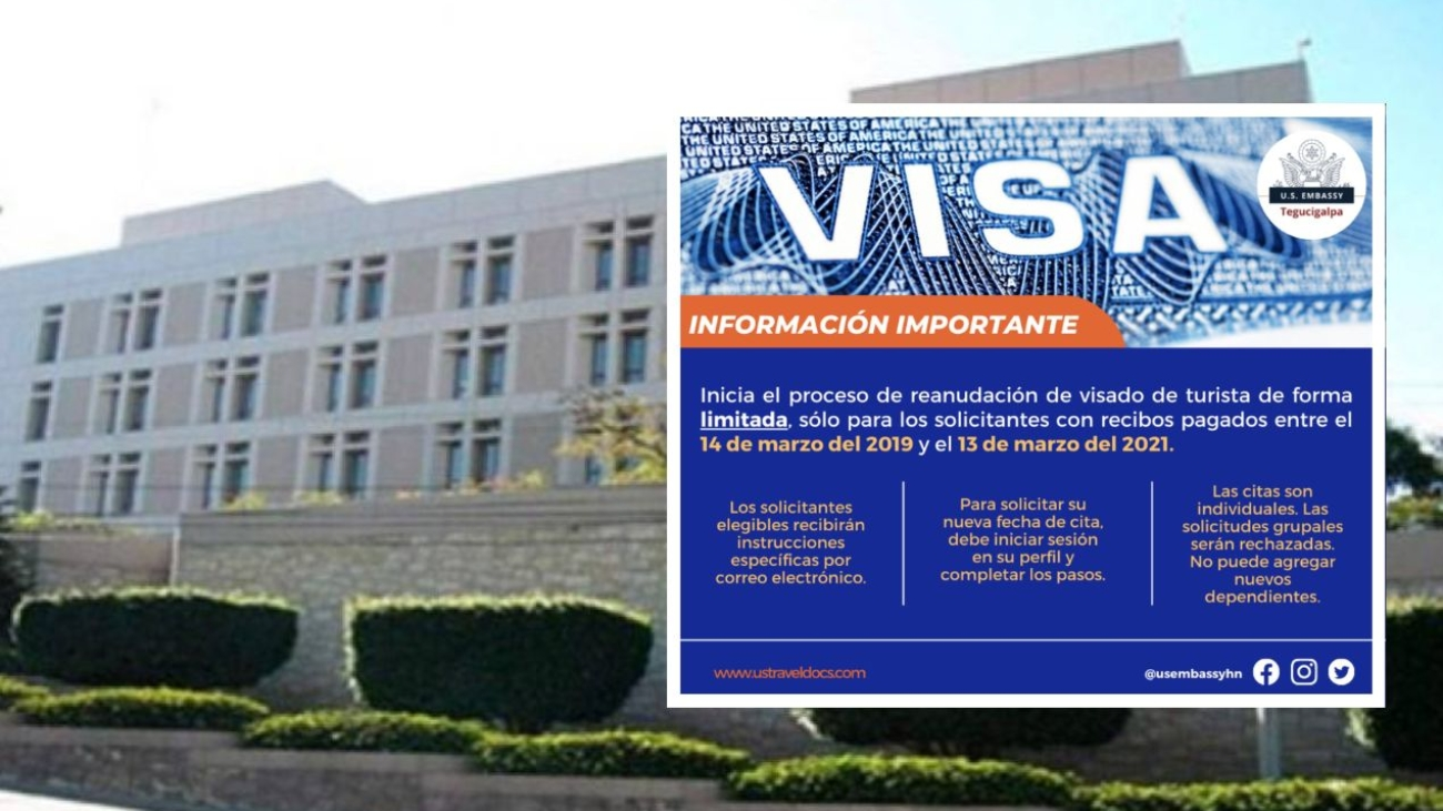 La Embajada de los Estados Unidos en Tegucigalpa está reanudando el procesamiento limitado de visas de turista. Puede comunicarse al: support-honduras@ustraveldocs.com o a los siguientes números: Honduras: +504-2244-9540, Estados Unidos: (703) 745-5478. pic.twitter.com/LpIxGkDQhx