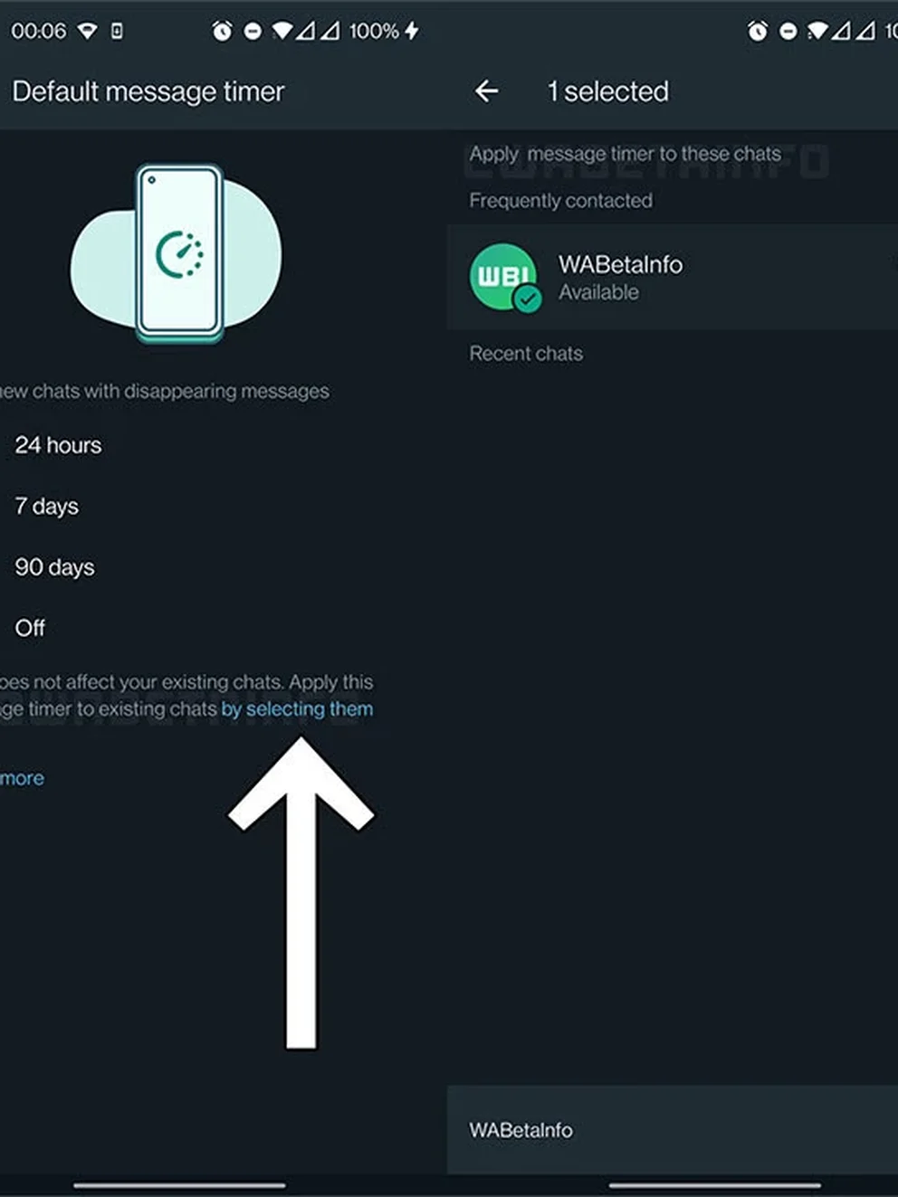 Nueva función para mensajes temporales. (foto: WABetaInfo)