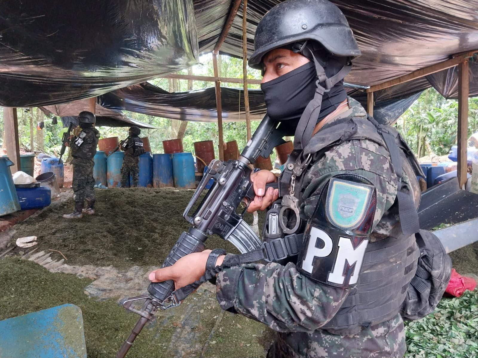 Agentes de la Policía Militar de Orden Público (PMOP) aseguraron este domingo una extensa plantación de arbustos de hojas de coca y un narcolaboratorio en el departamento de Olancho, oriente de Honduras.