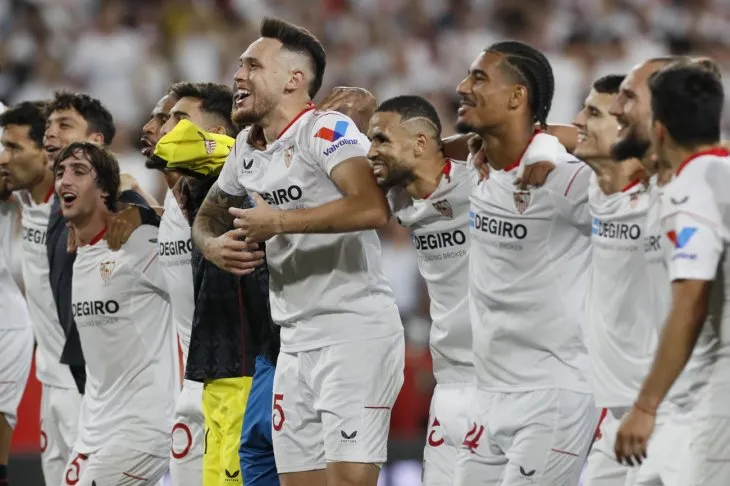 Sin el mexicano Tecatito Corona ni el senegalés Pape Gueye, no inscritos en Europa; ni el argentino Montiel por sanción y Jordán por lesión, y salvando esas bajas, el técnico sevillista, José Luis Mendilibar, sacó a su once de gala con el marroquí Bono de nuevo en la portería, En-Nesyri en punta o los argentinos Ocampos y Lamela como extremos.