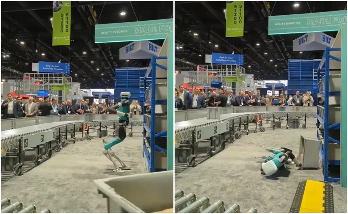 La compañía Agility Robotics, diseñó un modelo de robot con el objetivo de trabajar levantando cajas y realizando diferentes tareas en almacenes. Así surge Digit, el androide que terminó desparramado en el piso ante la mirada atónica de los visitantes que se encontraban en la exhibición.