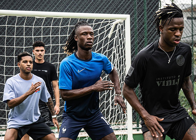 «Ajuste con las máquinas del Real Madrid», puso Mareus León en sus redes presumiendo de la dirección del entrenamiento junto a tres jugadores del nivel de Rodrygo, Vinícius y Camavinga en una jornada en Río de Janeiro.