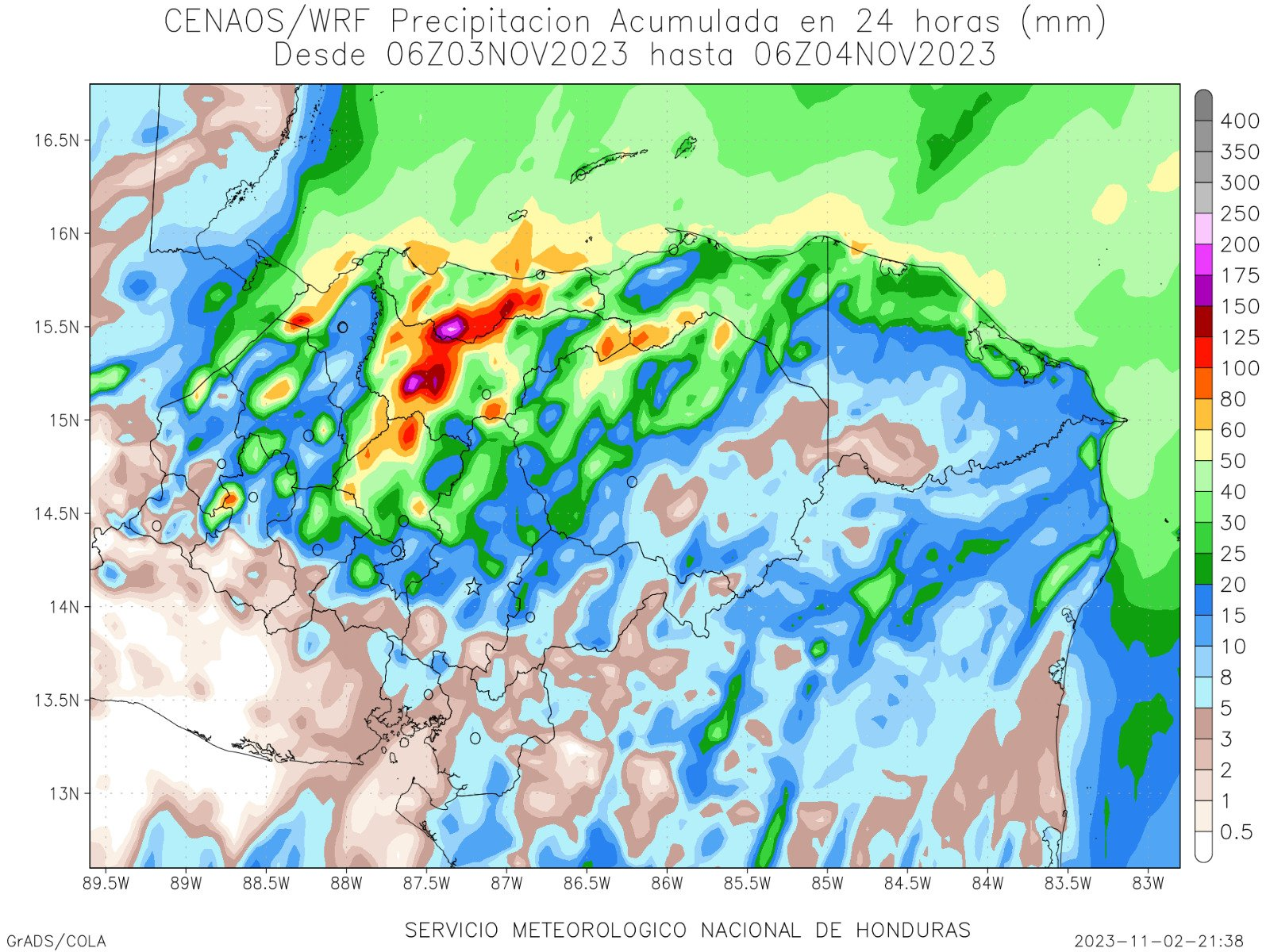 El pronosticador de turno del Centro Nacional de Estudios Atmosféricos y Sísmicos (Cenaos) de Copeco, Walter Aguilar, Masa de aire frío produce condiciones nubosas, viento acelerado, oleaje alterado en el Caribe, disminución de la temperatura y precipitaciones de moderadas a fuertes en el norte, noroccidente e insular, en el sur lluvias moderadas por humedad del océano Pacífico.