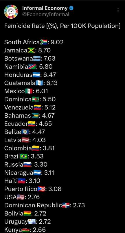 Por otra parte, Economía Informal, detalló que a nivel mundial, Honduras se encuentra entre los cinco países con mayor registro de feminicidios por cada 100 mil habitantes.