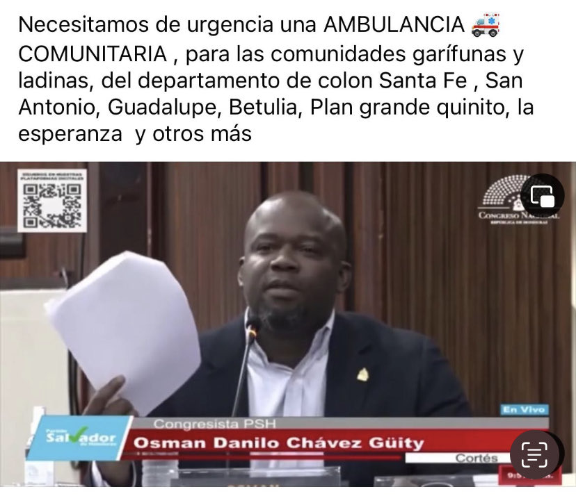 Antes de paralizar las labores en el Congreso Nacional, el diputado Chávez hizo una solicitud al pleno del Legislativo en donde solicitó una ambulancia para que cubriera varias zonas del departamento de Colón.
