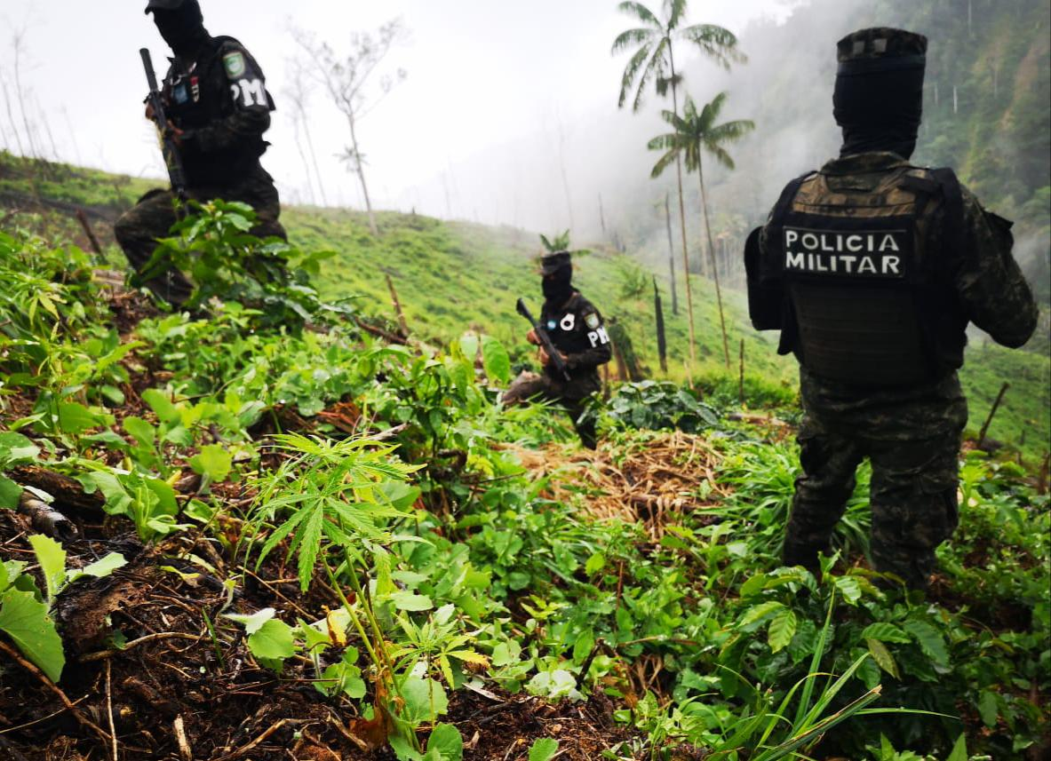 Las Fuerzas Armadas de Honduras (FFAA) a través de la Policía Militar del Orden Público (PMOP), aseguraron 52 mil plantas de marihuana ya cultivadas y otras 45 mil en viveros, mientras realizaron una operación en el Sacanli, Trojes, El Paraíso.