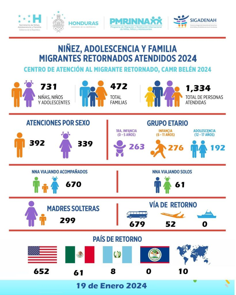 La Dirección de la Niñez, Adolescencia y Familia (Dinaf), ahora llamada Secretaría de Niñez, Adolescencia y Familia (Senaf) reportó que al menos 1,334 menores han sido deportados a Honduras en los primeros días del 2024.