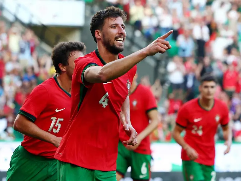 Tras varios remates más tibios, Portugal abrió por fin el marcador en el minuto 17, en un córner lanzado desde la izquierda por Vitinha que encontró a Rúben Dias en el área.