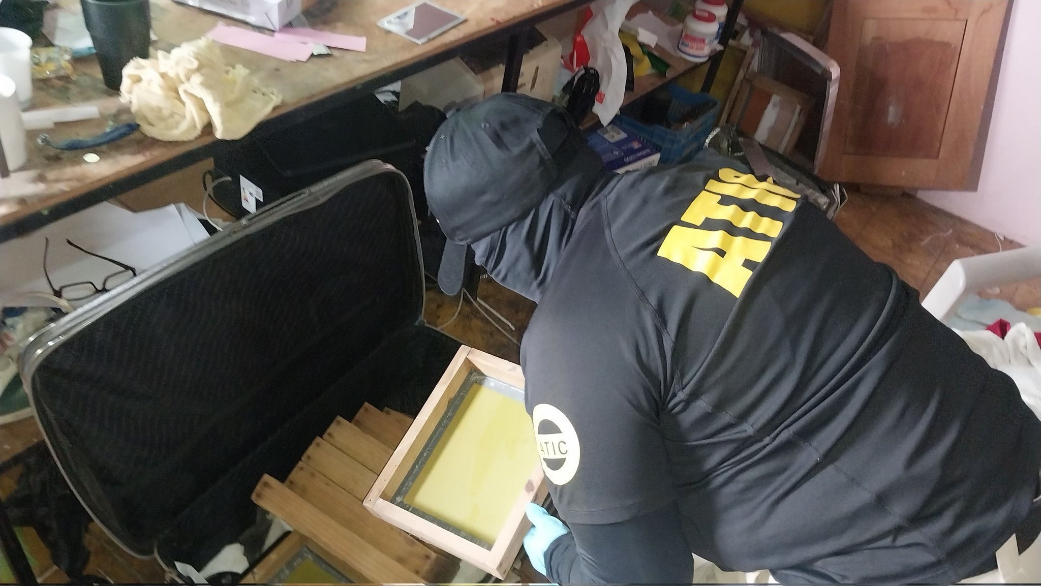 En las inspecciones a los inmuebles allanados, técnicos en procesamiento de la escena del crimen de la ATIC, hicieron el levantamiento de elementos de prueba como ser billetes falsos con la misma serie, legajos de papel con impresiones de moneda de distintas denominaciones, maquinaria (sublimadora artesanal), pantallas de serigrafía, sistemas informáticos, papel, impresoras, dispositivos de almacenamiento, tinta, solventes, entre otros encontrados en el taller de elaboración del dinero en Catacamas y en Tegucigalpa.