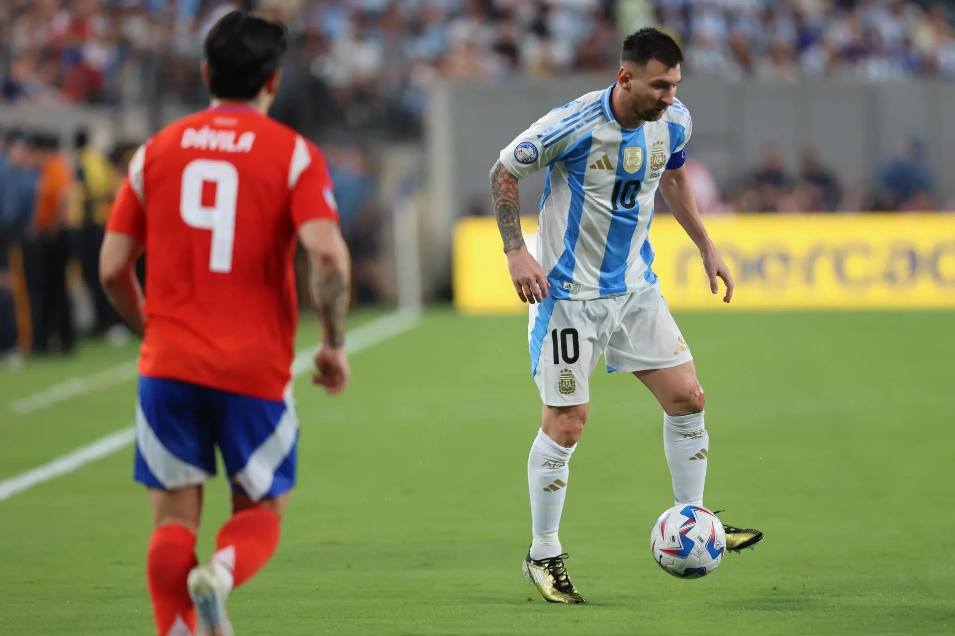 Argentina tardó más de 20 minutos en concluir con un disparo a meta una jugada, pero fue empujando contra su área a Chile y acumuló once disparos en el primer tiempo -tres a meta-, en el que tuvo un par de claras ocasiones para adelantarse.