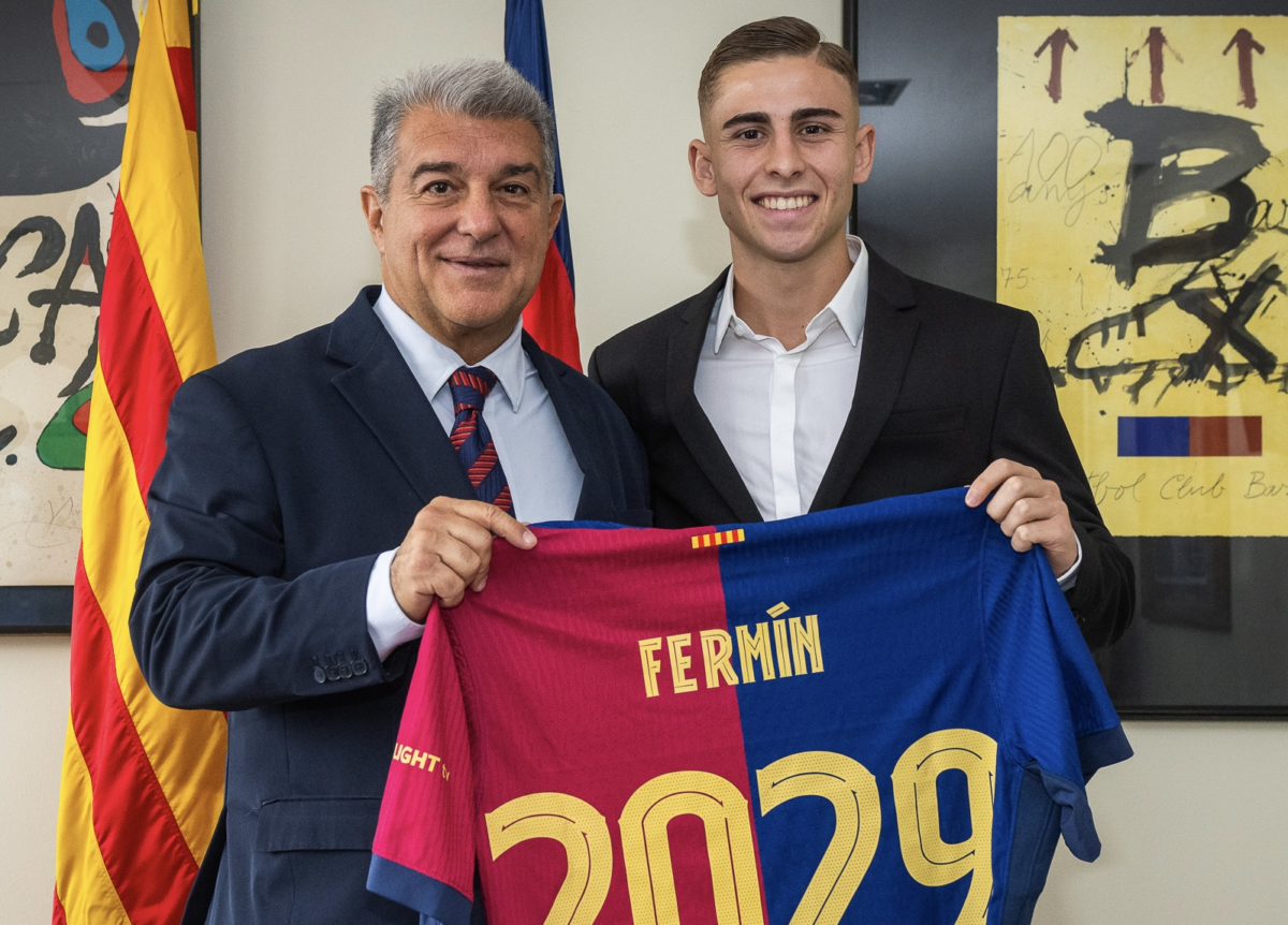 (EFE).- El centrocampista del Barcelona Fermín López ha renovado este jueves su contrato con la entidad azulgrana, que vencía en 2027, por dos temporadas más, hasta el 30 de junio de 2029, y con una cláusula de rescisión de 500 millones de euros, según ha anunciado el club.