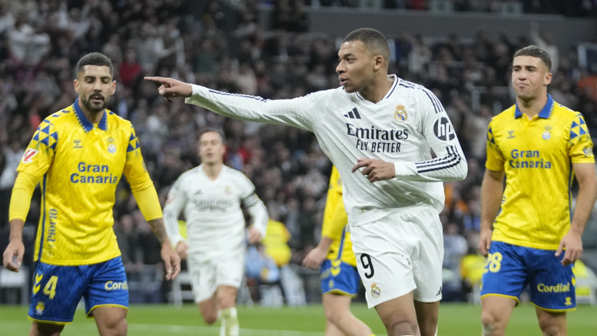 (EFE).- Kylian Mbappé, con un doblete y un partido en el que estuvo omnipresente, guió al Real Madrid al primer puesto de LaLiga y se erigió en el líder de su equipo en ausencia de Vinícius Junior, por sanción, en una goleada ante la UD Las Palmas (4-1) que se gestó con la necesidad de remontar y acabó calmando las aguas tras una semana revuelta para el conjunto blanco.