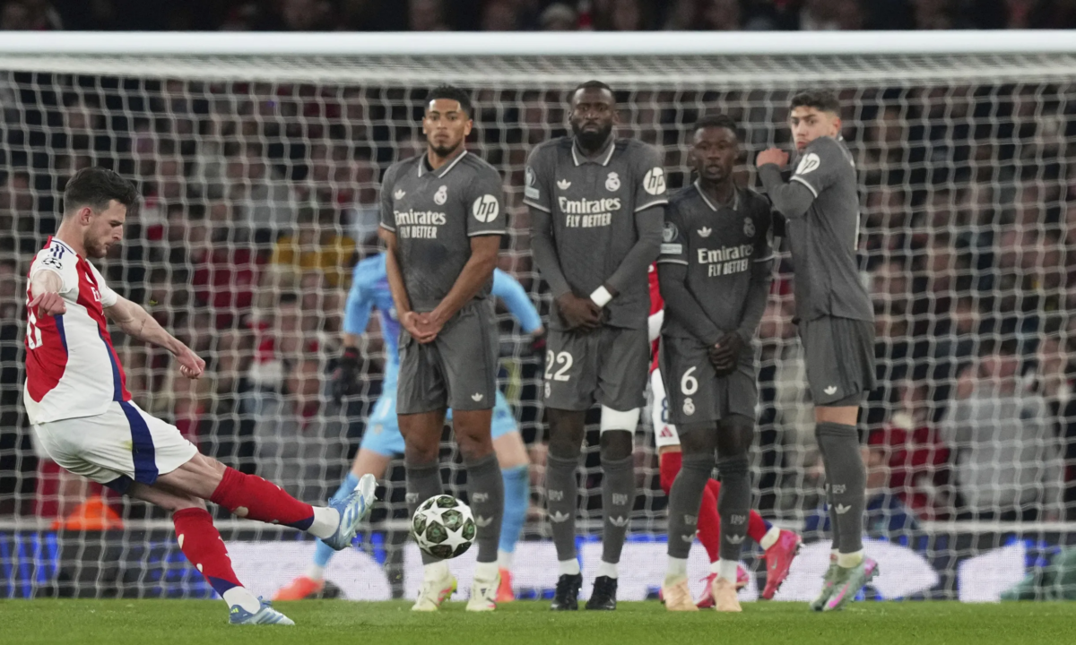 La primera anotación llegó tras un tiro libre ejecutado magistralmente por Rice, aprovechando un mal posicionamiento de la barrera merengue.