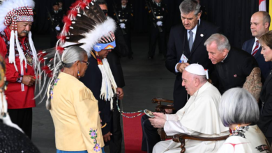 El papa Francisco recibió en Canadá la bienvenida de los indígenas